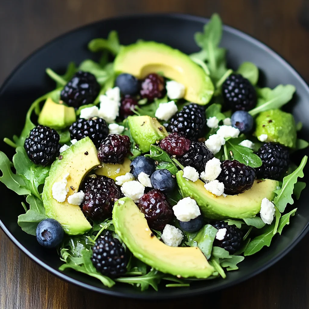 The Blackberry, Avocado, and Arugula Salad is a delightful blend of flavors that not only tantalizes your taste buds but also brings a burst of freshness to any meal. For more vibrant and nutritious options, be sure to explore [Citrus Quinoa Salad] or [Honey Mustard Grilled Chicken Salad]. We invite you to save this recipe on Pinterest and share your beautiful creations with our community—we can’t wait to see how you make it your own!