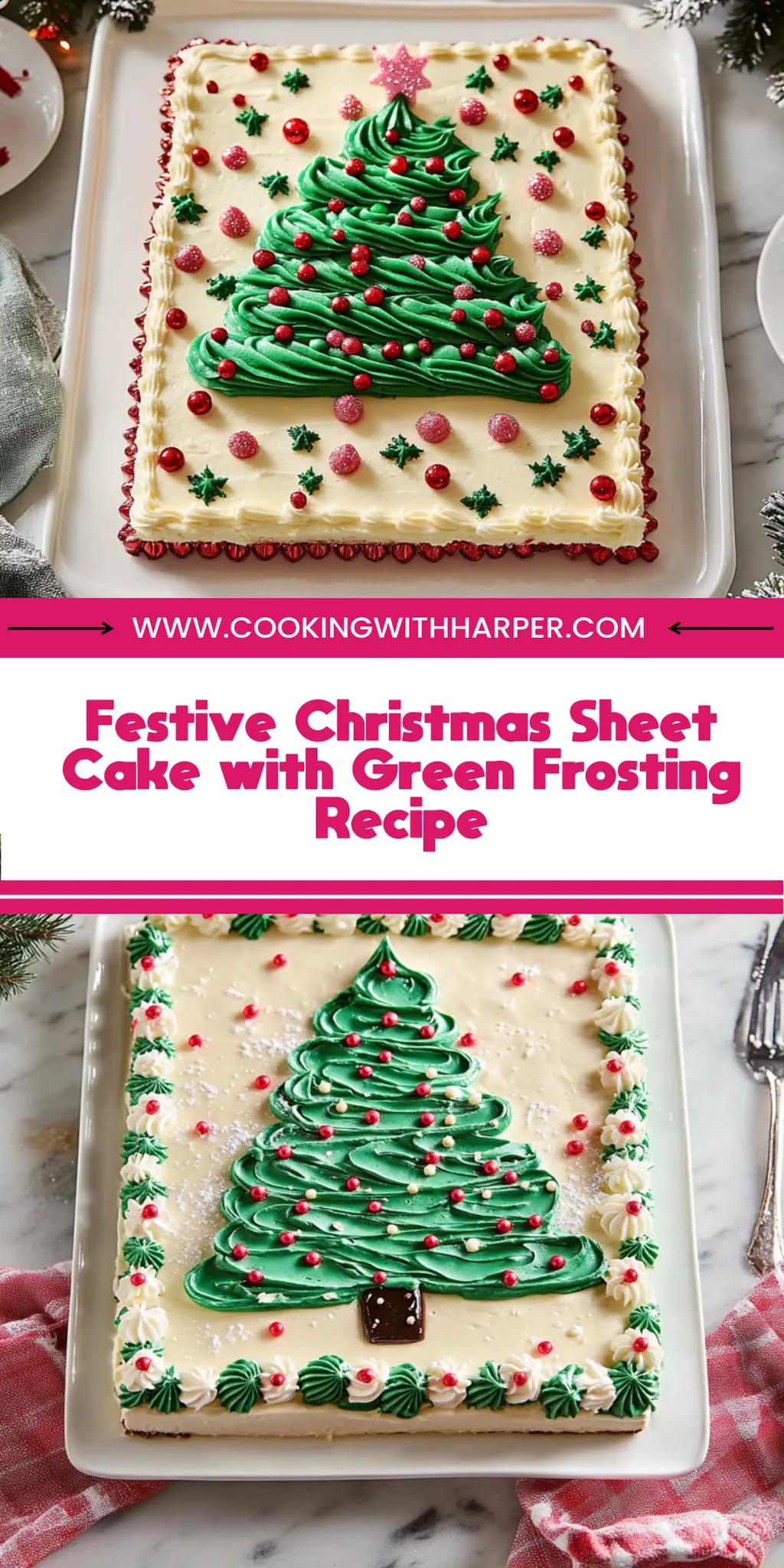 Festive Christmas Sheet Cake with Green Frosting