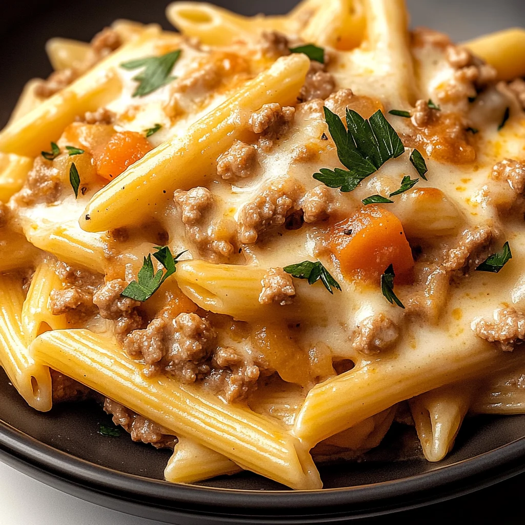A quick and creamy pasta dish featuring ground turkey, perfect for a comforting meal in under 30 minutes.