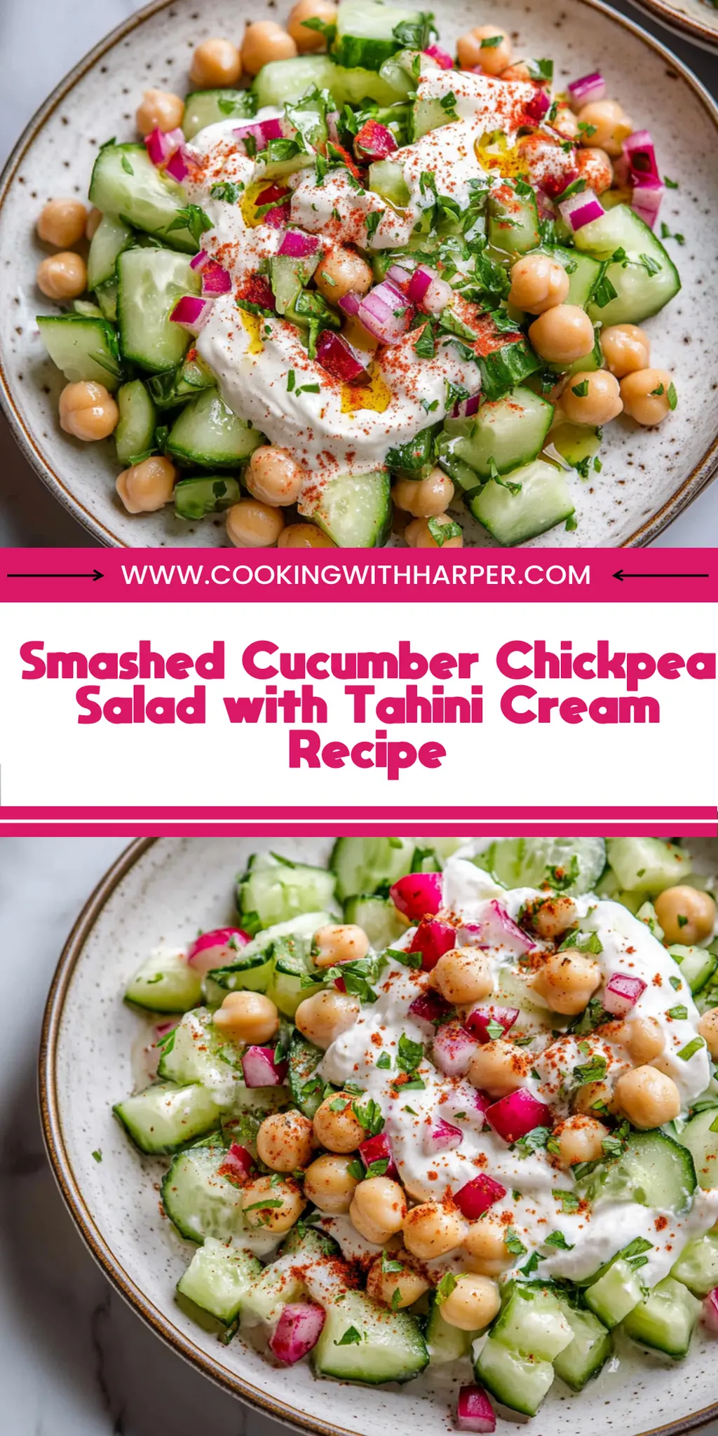 • This showstopping Smashed Cucumber Chickpea Salad with Tahini Cream Recipe delivers restaurant-quality results using simple ingredients you probably already have at home.